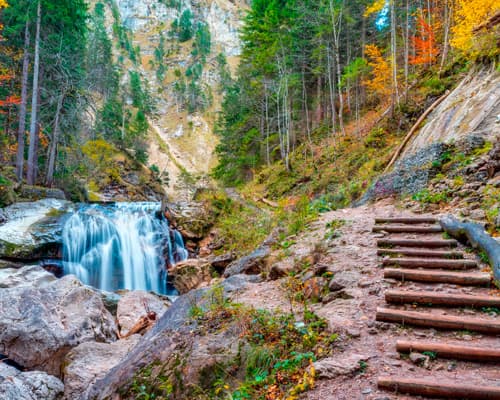 Füssen is an enchanting town in Bavaria, Germany, known by the Hohes Schloss and its Basilica and former Benedictine monastery of St. Mang. The famous Neuschwanstein Castle is a few kilometres to the east. There are beautiful lakes with beautiful views and the "Kalvarienberg" which has the "Stations of the Cross" on it. The most important sites to see in Füssen are: • Schloss Neuschwanstein: the mother of all castles known throughout the world. • Hohenschwangau This castle was the home of Louis II, while he was growing up. • Wies: This pilgrimage church is one of the great masterpieces of Rococo world. Has been designated a World Cultural Heritage Site by UNESCO. • Falkenstein: Another castle, this is a ruin, a short drive from Füssen, near Pfronten. • Via Claudia: Ancient Roman road from Donauwörth, in the Alps, to Venice. • Tegelberg: A ski resort, but in summer you can take the elevator to the top.